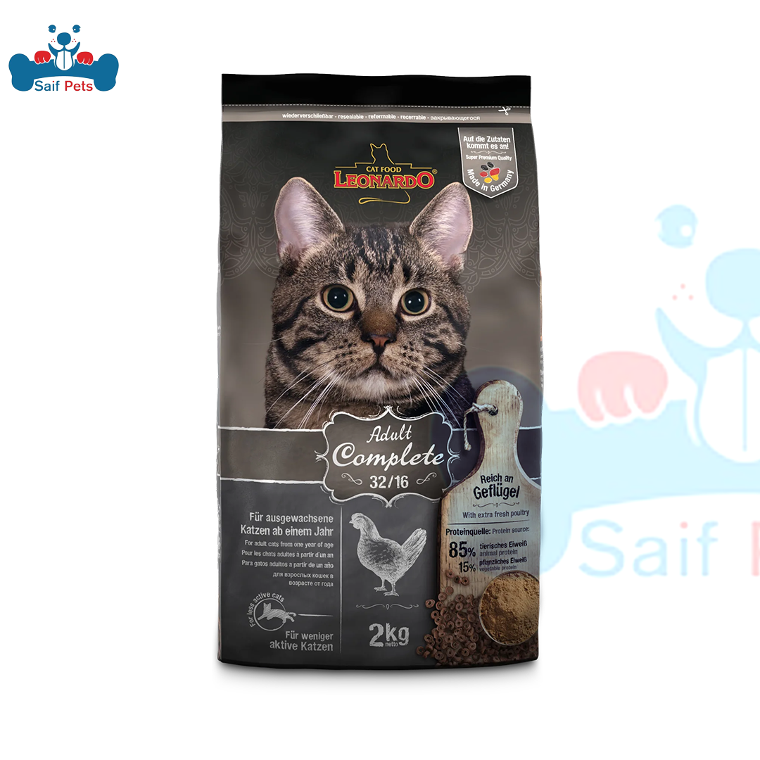 ليوناردو للبالغين 32/16 هو طعام جاف ومتوازن للقطط ذو مذاق رائع ويحتوي على جميع الفيتامينات والمعادن والمواد المغذية المهمة التي تحتاجها قطتك للبقاء بصحة جيدة. هذا الطعام الصحي مناسب بشكل خاص للقطط ذات مستويات النشاط المنخفضة بفضل محتواه المعتدل جدًا من الدهون بنسبة 16٪ فقط.